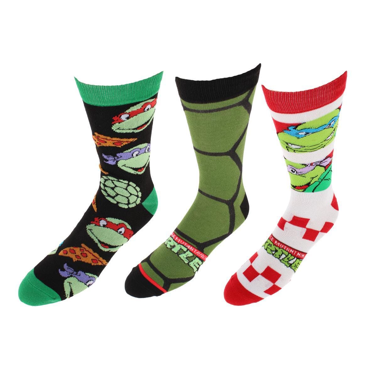 Cowabunga, dude! Bring some retro action to your everyday look with the Men's Teenage Mutant Ninja Turtles 3 Pack Crew Socks in a really cool TMNT van package! Featuring bold, colorful designs of Leonardo, Michelangelo, Donatello, and Raphael, this trio of socks is perfect for fans of the classic cartoon. Made from a soft, breathable fabric blend with just the right amount of stretch, these socks deliver all-day comfort with a hit of nostalgic style. Suit up with your favorite heroes in a half shell, pizza not included. Fist shoe sizes 6-12. Please note: Socks are not able to be returned or refunded if they have been removed from their original packaging.