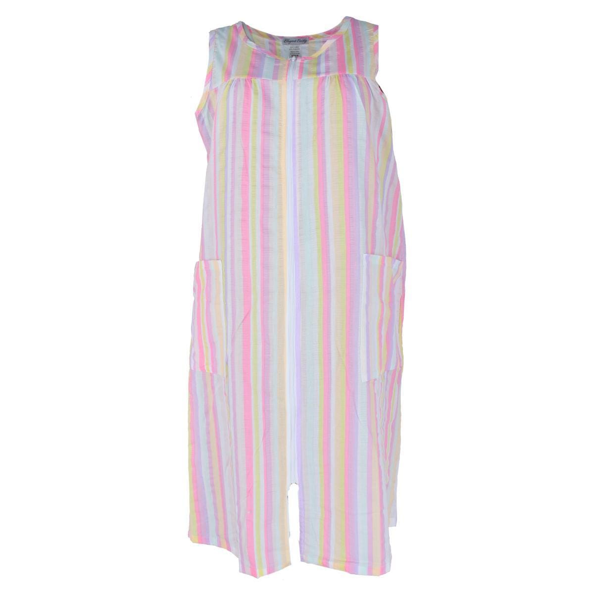 This duster gown is the perfect versatile summertime accessory. Made of a lightweight breathable cotton blend, this gown is not only perfect for a cool and comfortable sleep but perfect to throw on for a day at the beach. Its front zipper allows for easy on and off comfortability. Brighten up summer days and nights with this breezy gown.