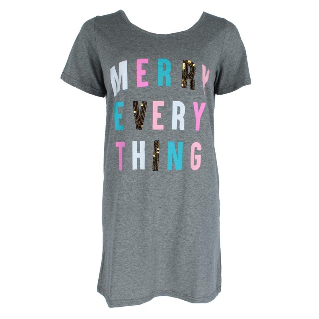 Be merry and bright this holiday season with this nightshirt. Made of a lightweight cotton blend, this shirt is a soft and comfortable piece to wear as you bundle up under the covers. It's partially sequined lettering adds a layer of holiday magic to this pajama shirt dress.Also available in plus size!