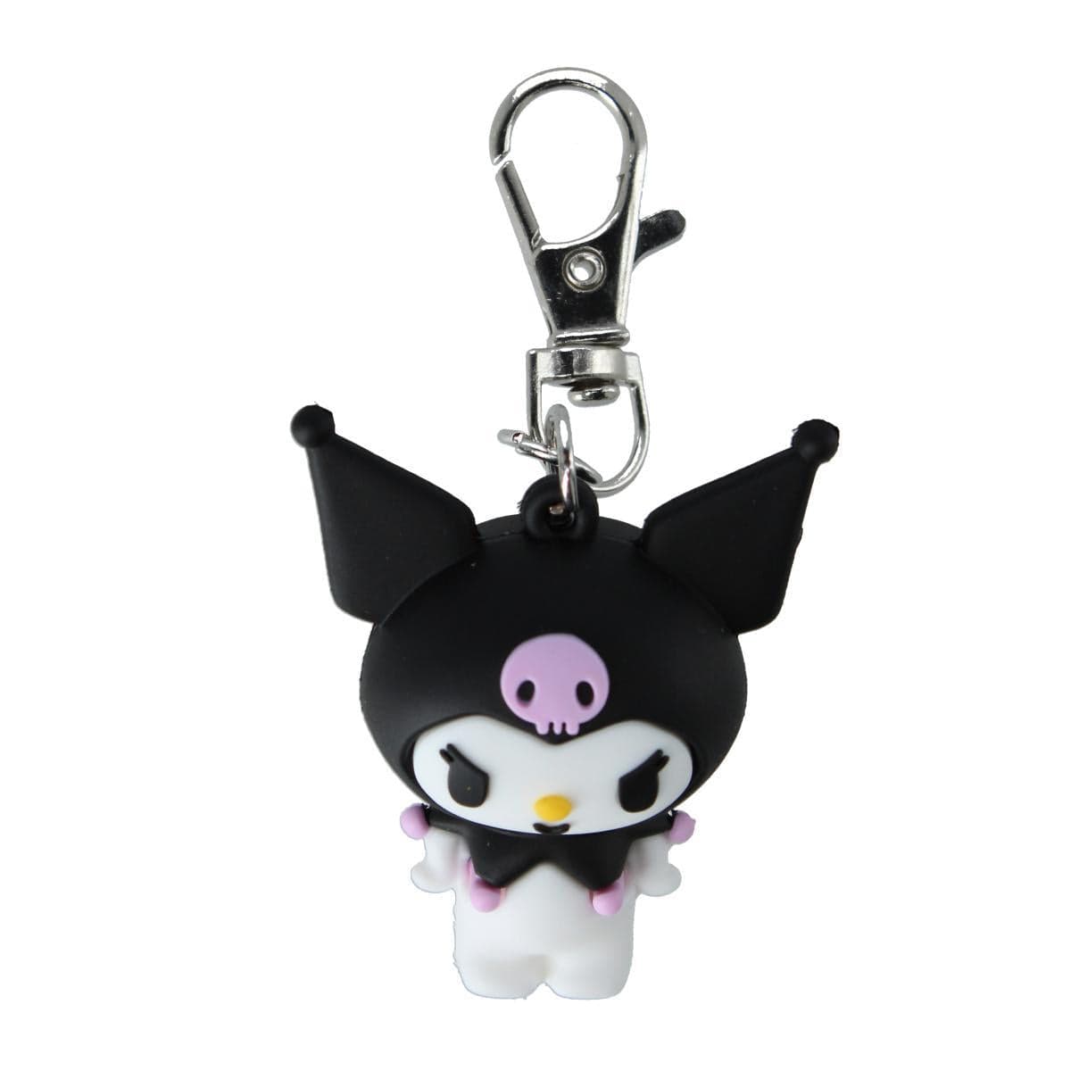 Add a dash of playful mischief to your everyday look with the Hello Kitty Kuromi 3D Bag Charm! Featuring a delightfully detailed 3D design, this charm showcases the beloved Kuromi with her signature jester hood and sassy attitude, perfectly paired with subtle Hello Kitty accents for a unique Saniro mashup. Crafted from high-quality molded rubber, this durable charm is both lightweight and eye-catching. The sturdy clasp easily attaches to your handbag, backpack, or keyring, making it the perfect accessory for fans of cute with an edge. Whether you are a longtime Sanrio lover or new to the kawaii world, this bag charm brings bold personality wherever you go. Measures 2.25" x 1 x 5.5 inches.